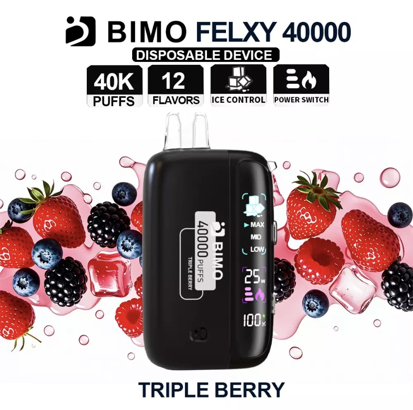 Built for users who want the simplicity of a disposable vape with proper control over the draw, the BIMO FELXY 40000 Pod – Triple Berry brings dialled‑in performance to the FELXY disposable vapes platform. Four‑step ICE CONTROL lets you set the chill, while three‑step POWER CONTROL (15 W, 20 W, 25 W) aligns output with your preference. A dual‑chamber layout separates cooling from taste intensity so each tweak makes a real difference, and the adjustable airflow slider helps you move from a snug pull to a more open inhale without any fuss.