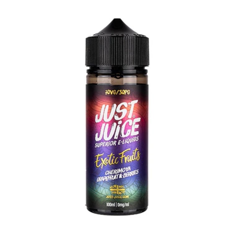 Just Juice Cherimoya, Grapefruit & Berries, in a 100ml shortfill, is a unique blend of creamy cherimoya, zesty grapefruit, and mixed berries. This high VG e-liquid blend creates a creamy and tangy vaping sensation.