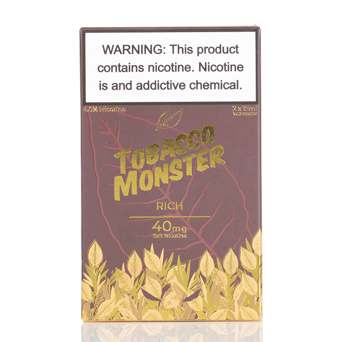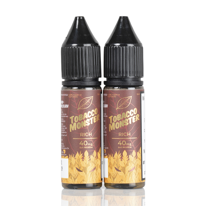 Check out Rich by Tobacco Monster Salts, a powerful nicotine salt blend crafted by the makers of Jam Monster Liquids, that incorporates notes of robust tobacco to tantalize the senses. From the creators of Monster Vape Labs.