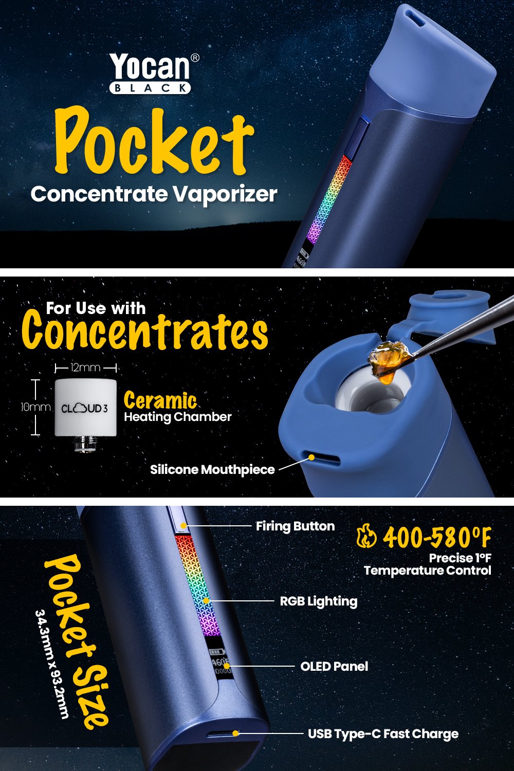 Unleash next-level dabbing with the Yocan Black Pocket Concentrate Vaporizer, featuring ultra-precise 1°F temp control, terp pearl stirring, and a 360° ceramic chamber—all in a rugged, travel-ready alloy body.